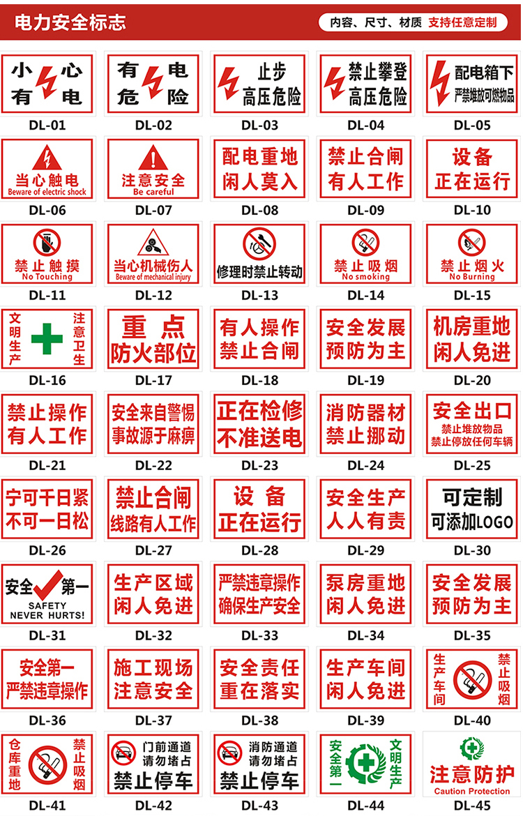 安全標(biāo)志牌、電力標(biāo)志牌、消防標(biāo)志牌、卡通標(biāo)志牌、疏散標(biāo)志牌。